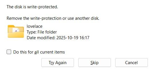 Error 2: Readonly - "This media is write-protected." or similar error.